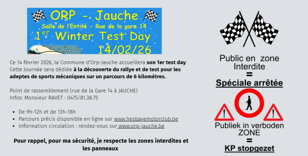 Ce samedi 14 février 2026 se déroulera le Winter Tet Day, passant par les villages de Marilles, d’Orp-le-Grand et de Jauche.